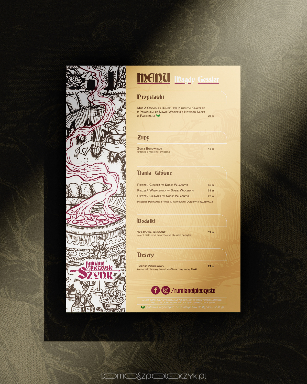 Two of many projects for Rumianie i Pieczyste Szynk made after the "Kitchen Revolution". The latest menu and the now outdated autumn/winter edition with dishes from Magda Gessler's recipes included in a separate menu.