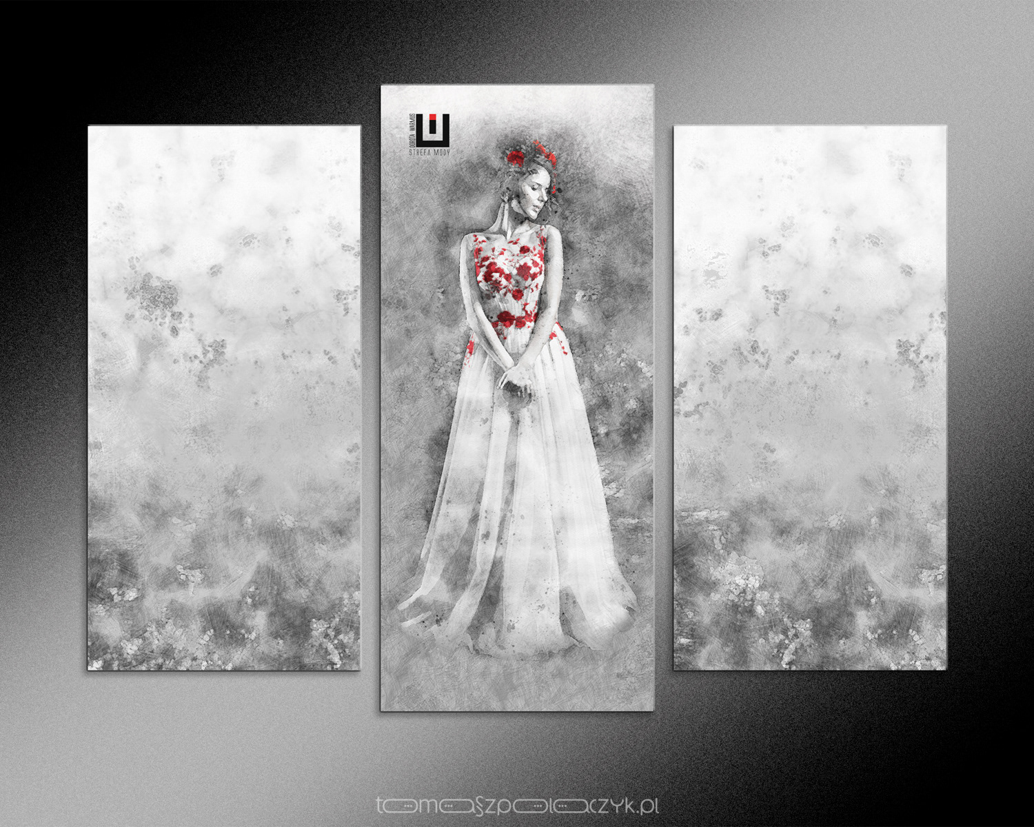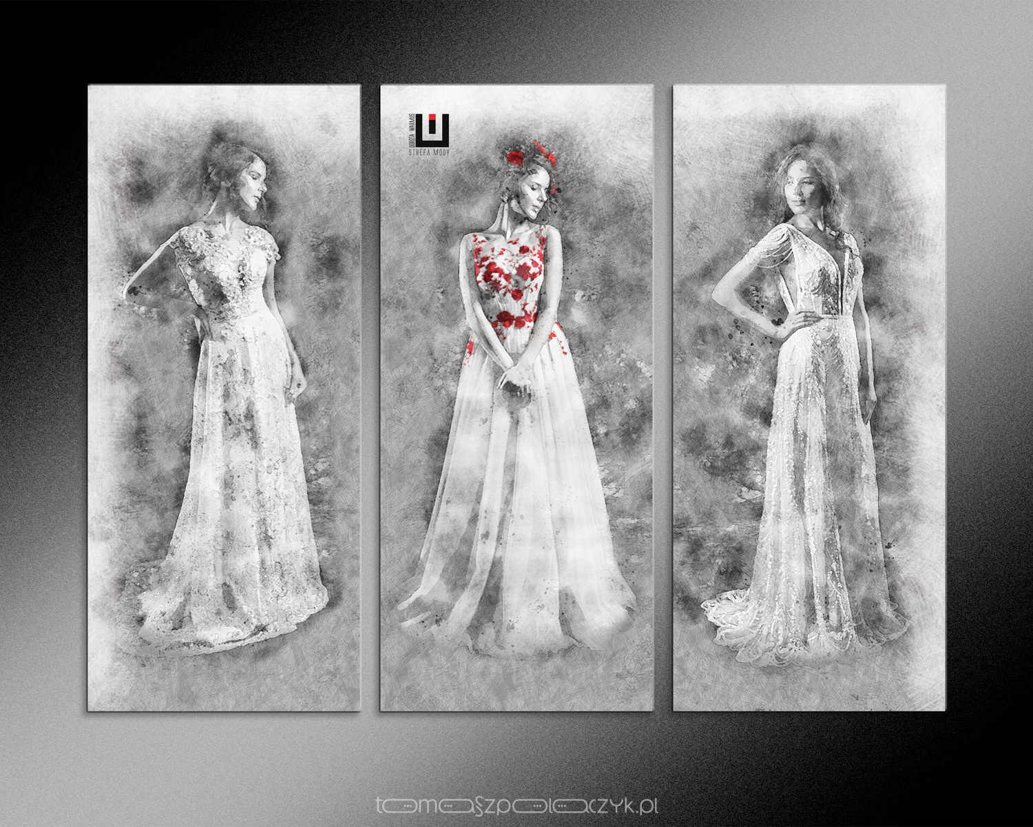Projekt graficzny tryptyku i tła dla salonu sukien ślubnych